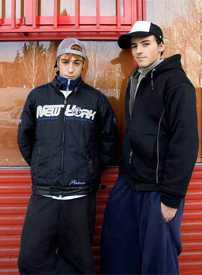 Cuando José se remanga el pantalón del chándal y enseña el dragón tatuado en su tibia, sus 10 alumnos se emocionan. Conocen el rito. Antes de echarse a bailar, su profesor siempre saca de paseo esa bestia del medievo que le decora la pierna. José, de 17 años, pura fibra, un aro en la nariz y otro en el lóbulo; ágil como una gacela; de Móstoles, una de las llamadas ciudades dormitorio del sur de Madrid (200.000 habitantes); ropa suelta, gorra calada en la cabeza, zapatillas. Va a todas partes en bici; es serio, callado, buena gente. Y baila break dance incluso dormido. Desde que, a los 14 años, unos "tíos mayores" le preguntaron a él y a su hermano David si les apetecía bailar. Y hasta ahora. David, otra gacela de 15 años. No tiene tatuajes, pero sí cuatro piercings (boca, ceja y dos más en la oreja). Más soñador y dicharachero. Lleva el pelo teñido de rojo anaranjado y en ocasiones usa guantes de cuero para no destrozarse las manos en sus acrobacias sobre el suelo (gasta un par cada tres meses).