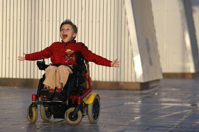 A sus siete años, José Miguel maneja su silla de ruedas eléctrica con la misma habilidad con la que pasa pantallas en la videoconsola. "Ésta la tiene desde hace dos años, aunque siempre la ha necesitado", dice su padre, que se llama José Miguel Casado, como el niño. "A veces te asusta. Tenías que ver cómo busca hueco entre los coches cuando los pasos de peatones están ocupados", añade Rosa García, su madre. José Miguel tiene atrofia muscular espinal, una enfermedad rara (la tienen uno de cada 10.000 nacidos) y degenerativa que se caracteriza por una debilidad que impide que las personas se sienten derechas, o que caminen. "De pequeño dio algunos pasos apoyándose en los muebles, pero ya no puede", cuenta el padre.