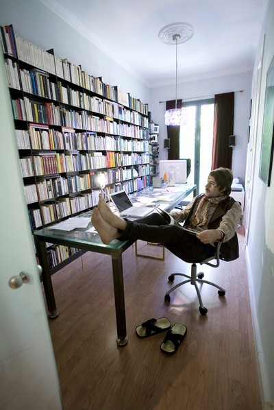 El estudio de Albert Serra irradia un perfecto orden, casi obsesivo. Los libros y DVD en las estanterías están colocados como con tiralíneas. Contrasta con el radicalismo y la controversia de este director de culto catalán. "Es la única manera de encontrar las cosas", asegura Serra, nacido en Figueres (Girona) en 1975, que aparece en la estancia mojado por la ducha que se acaba de dar nada más llegar a su apartamento en pleno centro de Barcelona. Un inmaculado sillón clásico de cuero está colocado justo enfrente del balcón que da a la calle, como si se estuviera ante una gran pantalla. Está por estrenar, aunque ya lleva varios meses en ese lugar, junto a una lámpara de pie. Todo preparado para la lectura. "La verdad es que todavía no me he sentado, y eso que me costó carísimo", dice divertido este cineasta tan querido, apoyado y también adorado en el Festival de Cannes, donde ha dado a conocer toda su filmografía. Recientemente se ha puesto a la venta un cofre de edición limitada de 1.000 ejemplares con las películas Honor de cavalleria (filme realizado en 2006, considerado entre los diez mejores de ese año por la prestigiosa revista francesa Cahiers du Cinéma y que estuvo casi dos años en cartel en Francia), El cant dels ocells y el documental Waiting for Sancho, en el que el propio realizador hace de actor. El cofre ofrece también el libro Honor de cavalleria. Plano a plano, en el que Serra descompone su película sobre el Quijote.