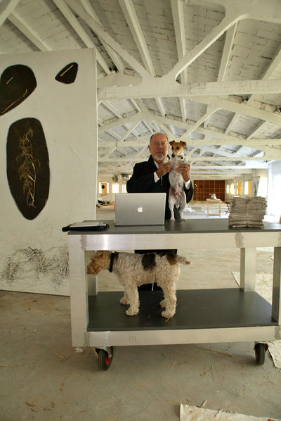 Bigas Luna (Barcelona, 1946) se ha apropiado de un viejo gallinero al que acude a no hacer nada. Entre rato y rato se le escapan cuadros, guiones, montajes videoartísticos y composiciones a medio camino entre la pintura y la escultura, como la obra que elaboró para el pabellón español de la exposición de Shanghai. "Pero lo importante es venir a no hacer nada", subraya el director, guionista y artista polifacético desde el segundo piso de la nave agrícola que le sirve de taller desde 2006. Entre sorbos de té, con la línea del Mediterráneo en el horizonte como exigencia irrenunciable para trabajar, Bigas versa sobre las bondades de la inactividad, el reposo y la nada. Luego uno topa y se tropieza entre un suelo rebosante de murales, cuadros a medio trazar y remendados paquetes con guiones y borradores.