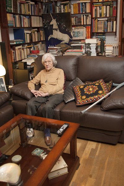 Ana María Matute, recién elegida premio Cervantes, vive en un luminoso sobreático en la avenida de Mare de Déu de Montserrat, en Barcelona, atiborrado de libros. Los hay por todas partes. No le gusta que los fotografíen, "¿qué va a pensar la gente de este desorden?". Están de obras. De pequeña le gustaba esconderse en los armarios. "Como era tan pequeñita, parecía un gnomo". Lo cuenta maravillosamente en Paraíso inhabitado (2008). Ahora, a los 85 años, también tiene su mundo secreto, su habitación, muy grande, que hace las veces de despacho. "Tengo una cama divertidísima. Está rodeada de madera. Me da la sensación de que estoy en una cueva o en una cabaña y eso me gusta". Es su lugar sagrado, en el que no entra casi nadie. Ana María está siempre ocupada. Se levanta sobre las 12.00, cualquier hora anterior le parece "la madrugada". "Me levanto antes si tengo que hacerlo, pero me horroriza". Normalmente se queda leyendo hasta muy tarde. Ha descubierto la novela negra. "Siempre salen muchos nombres, y leerlas y hacer crucigramas me estimula. No quiero perder la memoria". Sigue escribiendo en su veterana máquina electrónica. Está dándole vueltas a una nueva novela. "Aún está en fase de proyecto". Con todo el jaleo del premio no tiene demasiado tiempo. Y no se puede quitar de la cabeza el discurso que pronunciará el 23 de abril cuando reciba el Cervantes. Más que escribirlo, le preocupa leerlo. Jaleos aparte, suele trabajar hasta la hora de comer, las tres o las cuatro de la tarde. "La palabra tarde me pesa, aunque me he acostumbrado a trabajar a segunda hora".