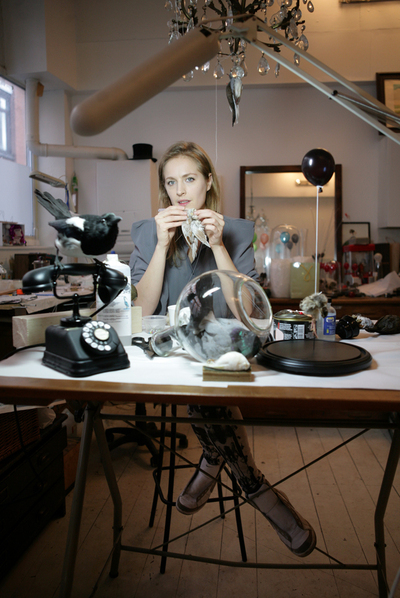 El estudio londinense de Polly Morgan (pollymorgan.co.uk) no es apto para aprensivos. Esta taxidermista inglesa de 31 años vive y trabaja rodeada de animales muertos. Unas alas de pájaro descansan en la mesa junto a una barra de cereales a medio comer. El frigorífico está repleto de canarios y periquitos en bolsas. "Hago una mezcla de carnicería y escultura", afirma la artista, de humor cáustico y físico exquisito. "Cuando he desollado al animal y he retirado toda la carne, puedo moldearlo como prefiera". Morgan ha hecho de la taxidermia un arte. Ha fabricado esferas de alas y ramilletes con cabezas de periquitos. Los polluelos en sus vitrinas flotan desfallecidos y prendidos de un globo. Los animales constituyen uno de los elementos de la instalación, nunca el todo. Refinada y lúgubremente bella, su obra está más cerca de la tradición del memento mori que de los trofeos de caza. "Los otros taxidermistas no me consideran parte del gremio. Su tratamiento es muy naturalista; el mío, todo lo contrario". Sus creaciones han sido exhibidas en las galerías londinenses White Cube y Haunch of Venison, y han atraído la atención de coleccionistas como Charles Saatchi y Anita Zabludowicz. En junio tiene previsto exponer en Venecia coincidiendo con la Bienal de arte. El artista Damien Hirst, propietario de varias de sus piezas, es uno de sus admiradores. Aunque Morgan aprecia su trabajo no considera que compartan influencias: "Los dos utilizamos animales. Pero lo que hace Hirst parece salido de un laboratorio. Mis fundamentos empiezan en la imaginaría victoriana". Criada en el campo, llegó a Londres a los 18 años para cursar literatura inglesa. Desencantada con sus estudios universitarios, Morgan comenzó a trabajar en un bar frecuentado por artistas. Cuando se mudó a un piso encima del establecimiento, mientras pensaba cómo decorar su nuevo hogar, se le ocurrió que podía incluir algún animal disecado: "Estuve mirando, pero todo era carísimo. Decidí aprender a hacerlo yo misma". Un día viajó hasta Edimburgo, disecó una tórtola junto a un maestro taxidermista y volvió a Londres en el tren de la tarde con su primer trabajo bajo el brazo. Morgan se sirve exclusivamente de animales que han fallecido por accidente o causas naturales. Su mayor inspiración son las aves: "Se trata de seres angélicos, delicados, de colores hermosos. Son criaturas de otro mundo. Y además vuelan". No todos los animales en el estudio de Morgan son inertes. Dos perros merodean por el caótico loft. La artista asegura rotundamente que nunca inmortalizará a sus canes. "Ni los míos, ni los de otros. Me niego a trabajar con mascotas".