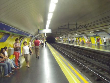 En la estación de Avenida de América, donde confluyen las líneas 4, 6, 7 y 9, hay calma. Los trenes pasan con una frecuencia aproximada de seis minutos (nomalmente la frecuencia es de entre dos y cuatro minutos a estas horas). Los vagones van llenos, pero hay espacio para todos.
